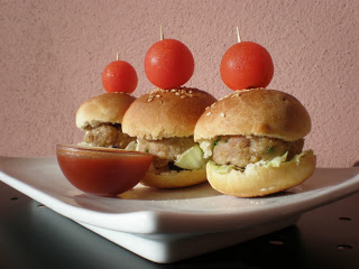 Mini hamburguesas caseras con salsa bbq (homemade mini burger with bbq sauce) PlatoFácil55 min Enviar esta receta a un amigo Imprimir esta página Preguntar al autor Publicar la foto de esta receta Ingredientes 3 Agua: 70 gr Leche: 90 gr Huevo: 1 Mantequilla: 15 gr Miel: 1 cucharadita Harina de panadería: 300 gr Levadura seca de panadería: 3 gr Leche Semillas de sésamo Pan rallado: 3 cucharadas Perejil fresco picado: 6 ramitas Mostaza de Dijon: 2 cucharaditas Carne de ternera picada: 400 gr Huevos: 1 grande Cebolla: 1 pequeña sal y pimienta aceite de oliva Aceite: 2 cucharadas Cebolla: 1 pequeña finamente picada Vinagre de vino tinto: 3 cucharaditas Azúcar moreno: 1 cucharada Salsa de tomate: 80 ml Salsa worchestershire: 2 cucharaditas Salsa de soja: 2 cucharaditas
