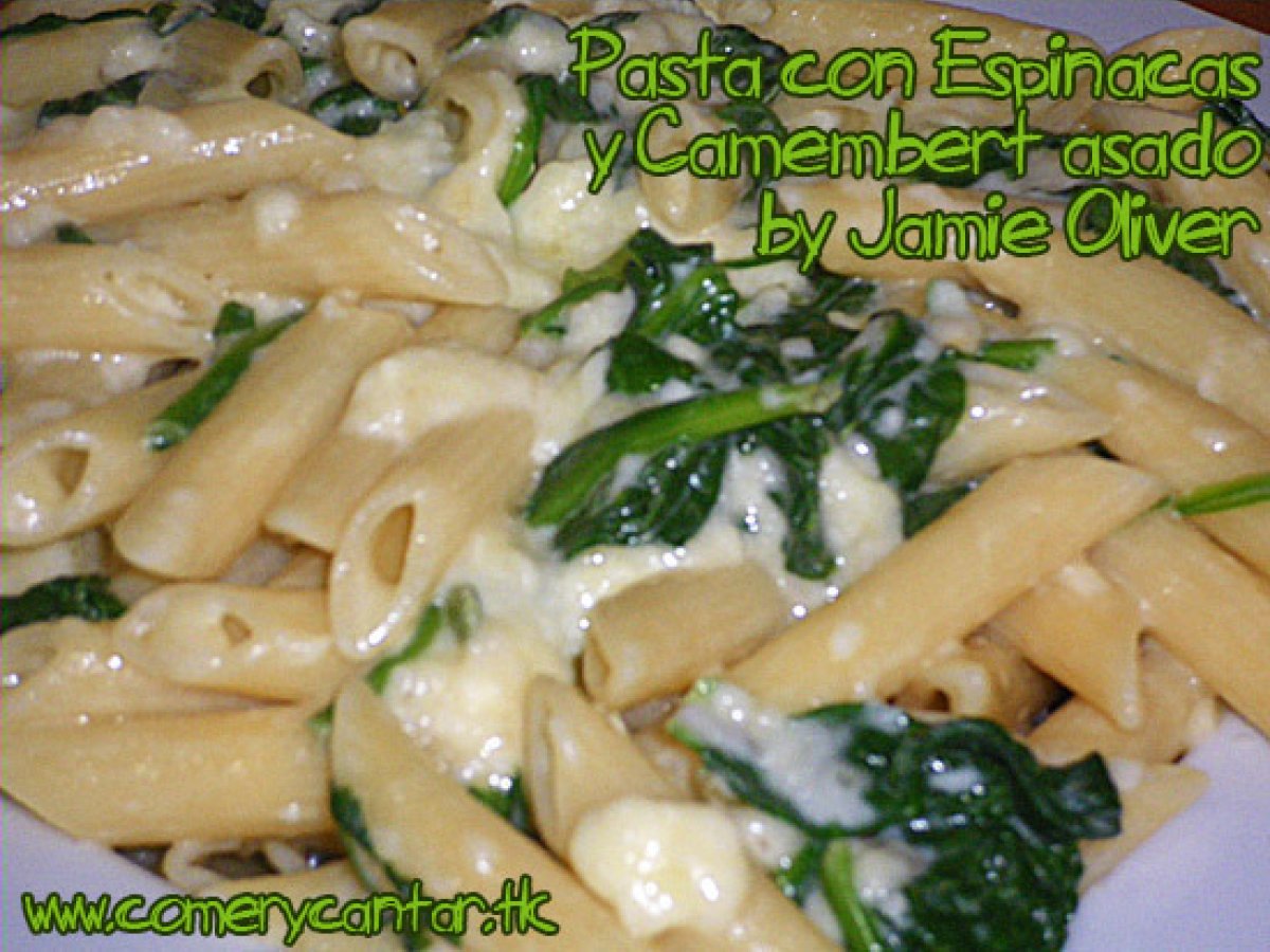 Pasta con espinacas y camembert asado de jamie oliver PlatoFácil35 min Enviar esta receta a un amigo Imprimir esta página Preguntar al autor Publicar la foto de esta receta Ingredientes 5 1 cajita de camembert de 250 g 2 dientes de ajo 1 ramita de romero fresco sal pimienta negra 2 cucharadas de aceite de oliva virgen extra 100 g de queso parmesano rallado 250 g macarrones 150 g espinacas frescas
