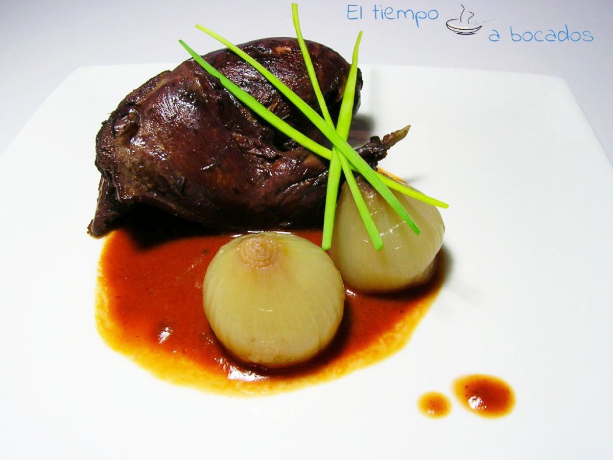 Podemos acompañar la carne, con unas cebollas pequeñas o con unas cebollitas francesas, que guisaremos a la par que nuestra perdiz, o aparte con un poco de agua y otro chorro de Oporto.