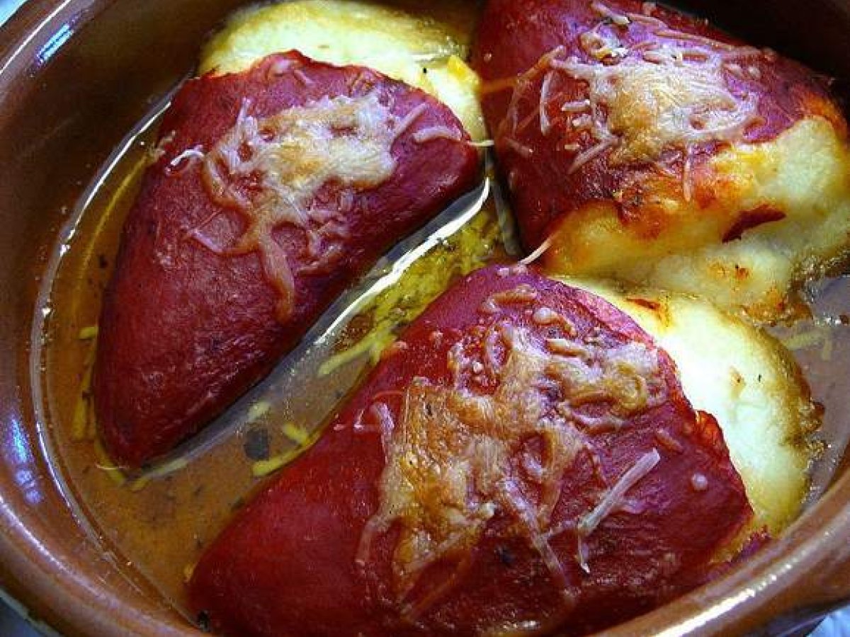 Piquillos de lodosa rellenos de brandada de bacalao y centolla