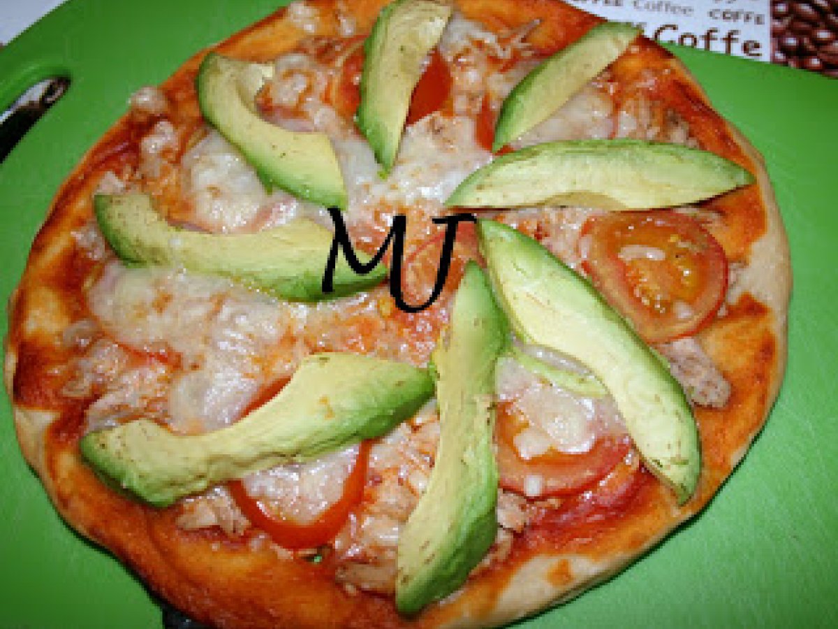 Pizza de atún con aguacate PlatoFácil50 min Enviar esta receta a un amigo Imprimir esta página Preguntar al autor Publicar la foto de esta receta Ingredientes 5 1 taza de harina de trigo 1 taza de harina integral 1 taza de agua tibia 3 cucharadas de aceite de oliva 1 sobre de levadura en polvo 1 pizca de sal 1 pizca de azúcar 4 a 5 cucharadas de tomate en pasta pizca de ajo molido pizca de orégano queso motzarella 2 latas de atún en al natural 1 o 2 tomate pequeños media taza de champiñones medio aguacate aceitunas negras