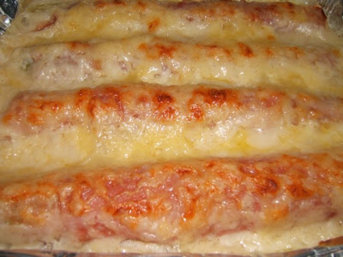 Puerros gratinados con jamón y queso