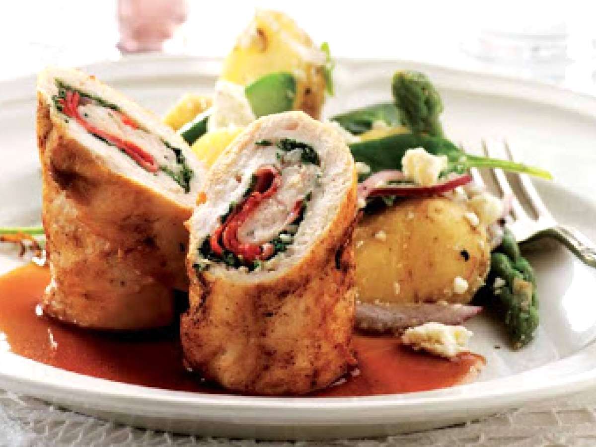 Deliciosos rollitos de Pollo rellenos y ligeramente picantes. ¡Excelentes! Perfectos para una comida especial.