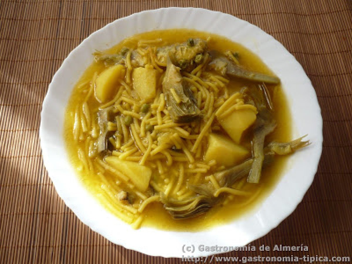 Recetas de pescado : fideos con pescado PlatoFácil30 min Enviar esta receta a un amigo Imprimir esta página Preguntar al autor Publicar la foto de esta receta Ingredientes 2 fideos, boquerones, alcachofas, cebolla, pimiento, guisantes, tomate, aceite de oliva, azafrán, sal y agua.