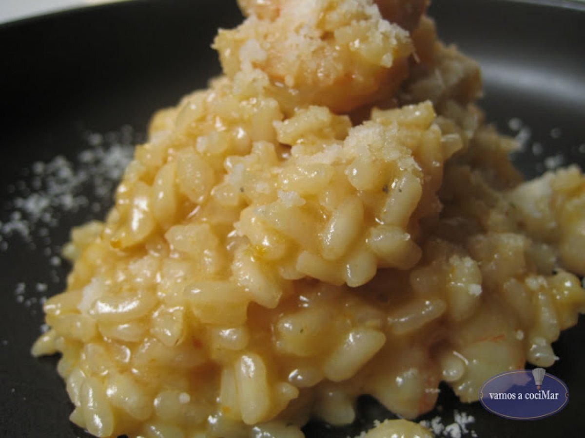 Risotto con langostinos al cava vota ahora PlatoFácil50 min Enviar esta receta a un amigo Imprimir esta página Preguntar al autor Publicar la foto de esta receta Ingredientes 1 400g arroz 500g langostinos o gambas peladas 40+40 g mantequilla 120 ml brandy 500 ml cava seco caldo de pescado 1 cebolla 1 zanahora Queso parmesano rallado Aceite de oliva Sal Pimienta