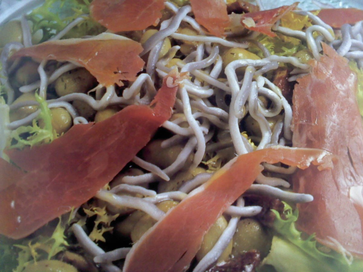 Salpicon de angulas y habas tiernas PlatoMedio35 min Enviar esta receta a un amigo Imprimir esta página Preguntar al autor Publicar la foto de esta receta Ingredientes 7 150 gr de habas tiernas 4 dientes de ajo, 150 gr de angulas, 100 gr de jamón serrano cortado muy fino en forma de virutas, vinagre de jerez, 4 cucharadas de aceite virgen extra un poco de comino, sal.