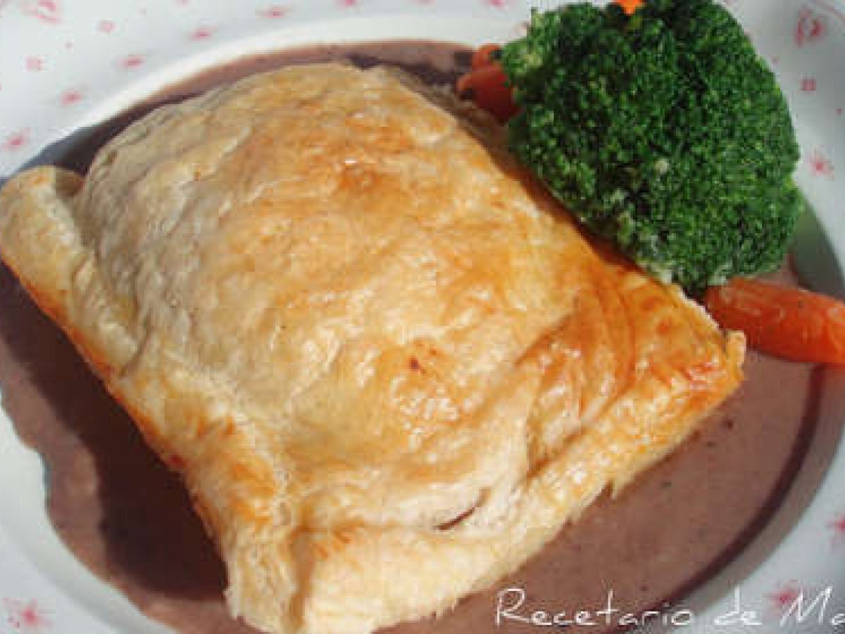 Solomillo wellington con salsa de arándanos PlatoDifícil1 h 10 m Enviar esta receta a un amigo Imprimir esta página Preguntar al autor Publicar la foto de esta receta Ingredientes 8 Los ingredientes que yo utilicé son: 1 pieza de solomillo de res de 3/4 láminas de hojaldre (congelado o casero) 1 bote de paté de cerdo ibérico 1 bote pequeño de nata para cocinar sal y pimienta cebollas champiñones huevo para pintar salsa de arándanos (casera o comprada) Para la guarnición: Brocoli congelado Zanahorias baby mantequilla ajos y perejil
