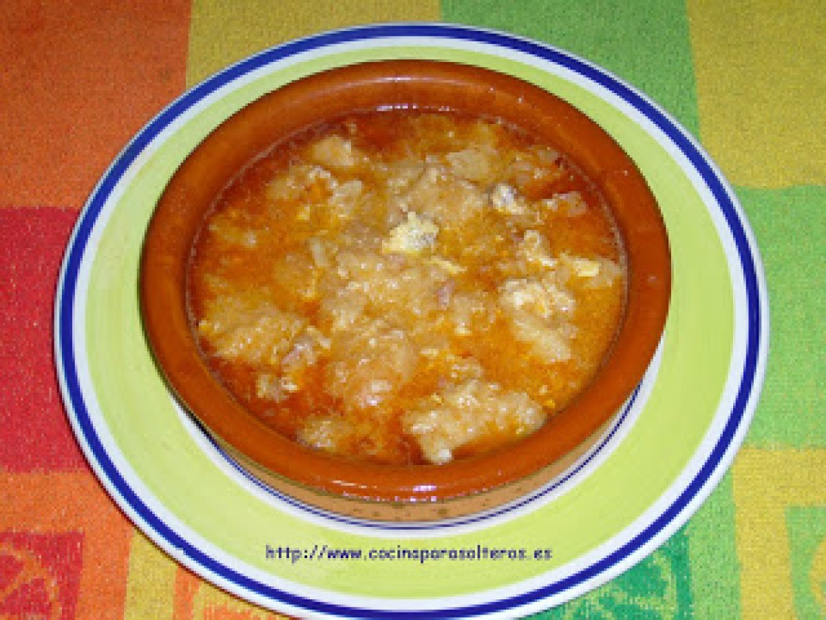 Sopa castellana (sopa de ajo) PlatoFácil27 min901 Kcal Enviar esta receta a un amigo Imprimir esta página Preguntar al autor Publicar la foto de esta receta Ingredientes 2 800 Cl. De Agua 250 g de pan del día anterior 6 dientes de ajo 100 g. de Jamón serrano troceado 100 g. de chorizo troceado. 2 huevos. Aceite de oliva ½ cucharada de Pimentón picante (si prefiere puede ser dulce) ½ cucharada de Comino 1 pastilla de caldo de carne (Opcional) Costo estimado: 7.21Euros€ (3.6€/porción)