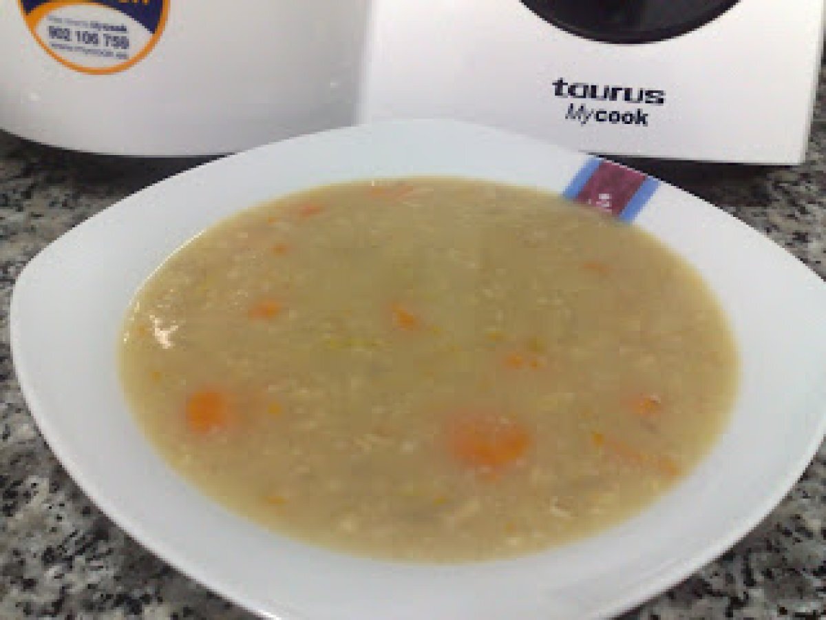 Sopa de copos de avena con verduras