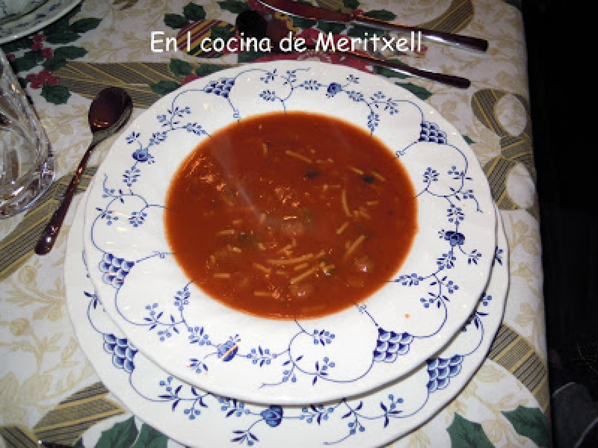 Sopa de tomate con albóndigas pequeñas PlatoFácil25 min Enviar esta receta a un amigo Imprimir esta página Preguntar al autor Publicar la foto de esta receta Ingredientes 2 600 g tomates 1 cebolla 2 puerro 1 zanahoria 1 patata 2 cúbitos de caldo 1 l de agua Unas albóndigas pequeñas cabello de ángel