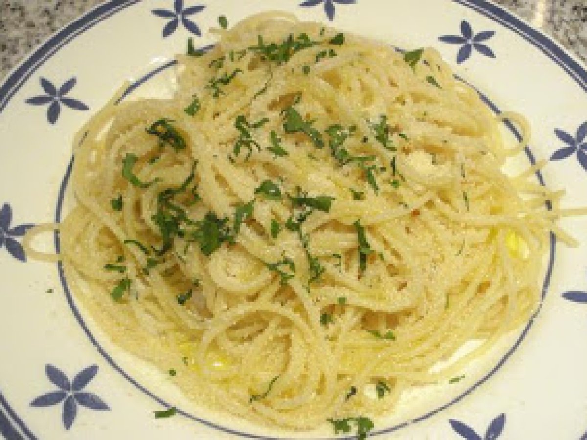 Spaghetti aglio e olio (espaguetis ajo y aceite) PlatoFácil30 min542 Kcal Enviar esta receta a un amigo Imprimir esta página Preguntar al autor Publicar la foto de esta receta Ingredientes 2 220 g pasta 1 diente de ajo aceite sal guindilla perejil pan rallado Costo estimado: 0.91Euros€ (0.46€/porción)