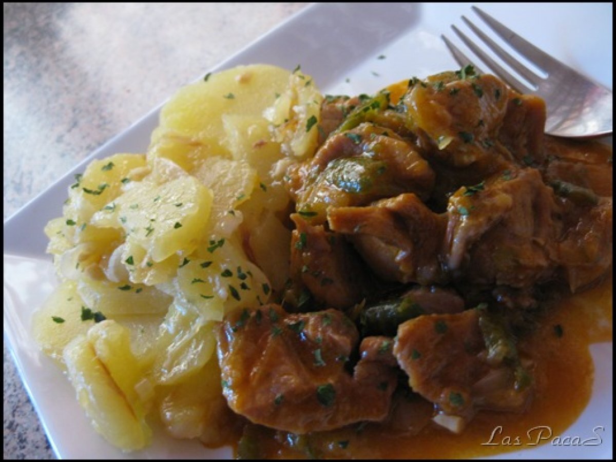 Tacos de cerdo con piperada de pimiento verde (thermomix)
