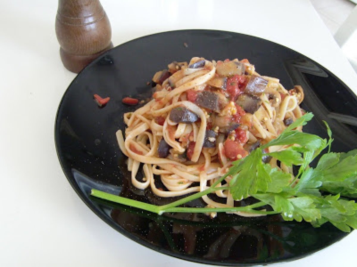 Tallarines con berenjenas y champiñones PlatoMedio35 min Enviar esta receta a un amigo Imprimir esta página Preguntar al autor Publicar la foto de esta receta Ingredientes 2 1 berenjena mediana en cubos 200 gr de champiñones pequeños fileteados 1 bote de tomate entero pelado de 400 gr, picados, aprovechando todo el líquido 2 dientes de ajo majados perejil picado, más alguna ramita para decorar aceite de oliva virgen extra sal pimienta recién molida