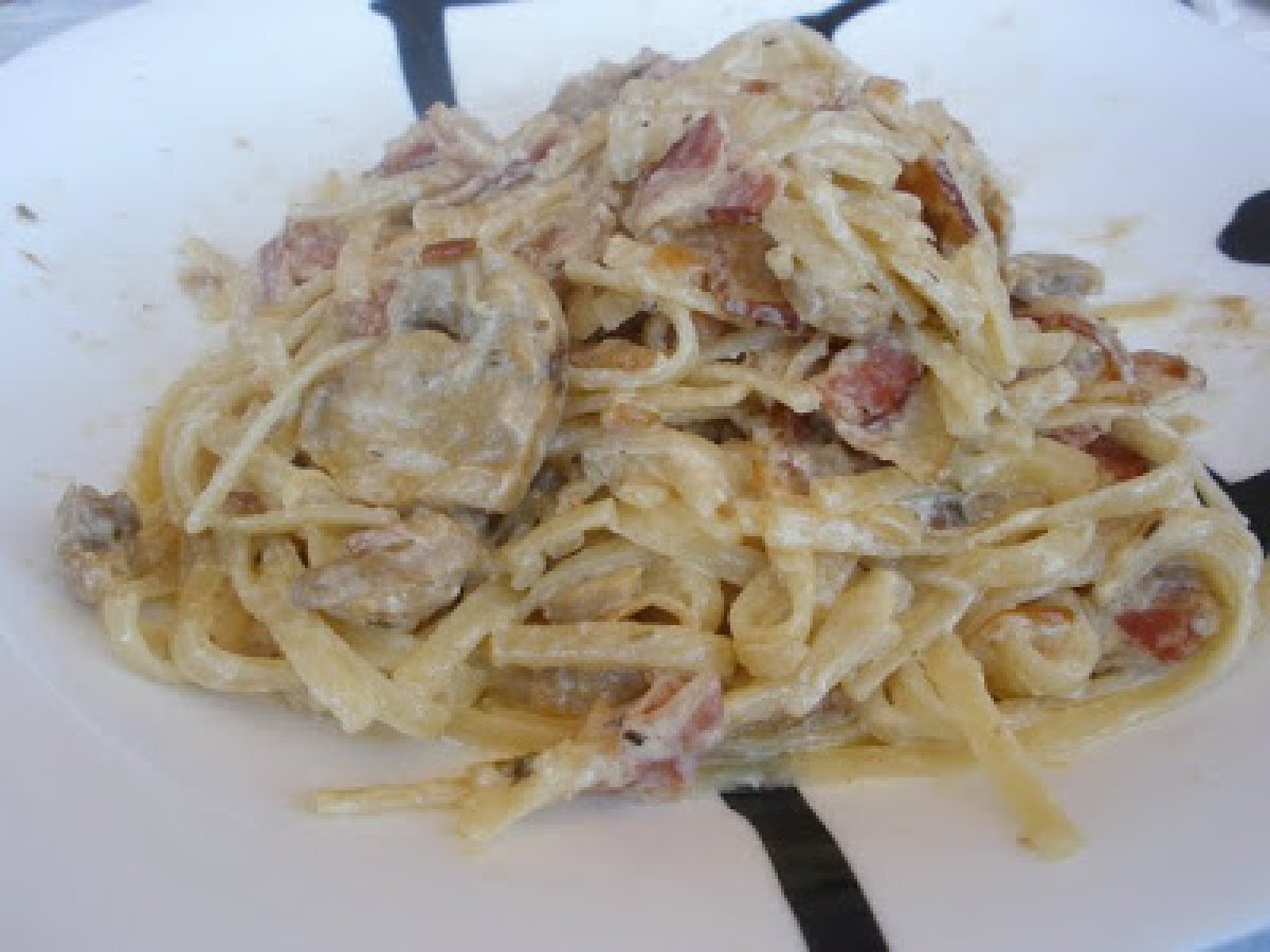 Este plato de tallarines con champinones y bacon es divinamente bueno