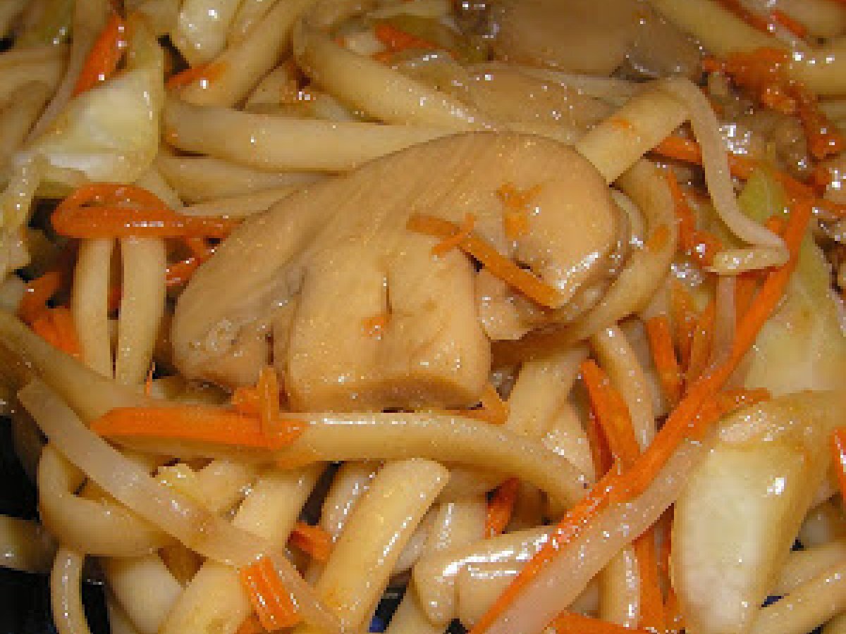 Tallarines con veduras y salsa de soja.