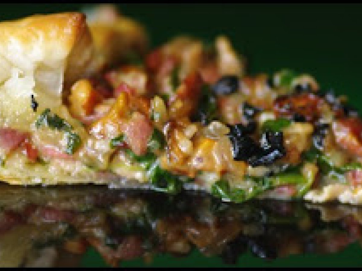 Tarta de hojaldre de espinacas, cantarelus y crema de queso parmesano PlatoMedio50 min Enviar esta receta a un amigo Imprimir esta página Preguntar al autor Publicar la foto de esta receta Ingredientes 8 Una lámina de hojaldre Una bolsa de brotes de espinacas Una cebolla morada picadita fina. 100 grs. de parmesano 100 grs. escasos de nata para cocinar. Una bandeja de cantarelus lavada y escurrida Unos 100 grs. de bacon en lonchas cortado finito. Un par de dientes de ajo. Un par de trufas. Un par de hojillas de perejil picado. Sal, pimienta y nuez moscada. Aceite de oliva virgen extra