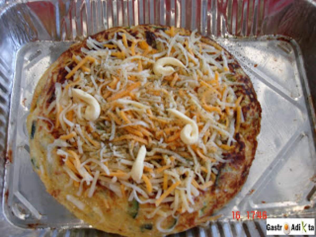 Tortilla de calabacín y cebolla gratinada a las finas hierbas PlatoMedio45 min Enviar esta receta a un amigo Imprimir esta página Preguntar al autor Publicar la foto de esta receta Ingredientes 4 2 o 3 calabacines (dependiendo del tamaño) 1 cebolla bien grande 6 huevos 50 g de queso rallado Finas hierbas Leche Sal Pimienta negra