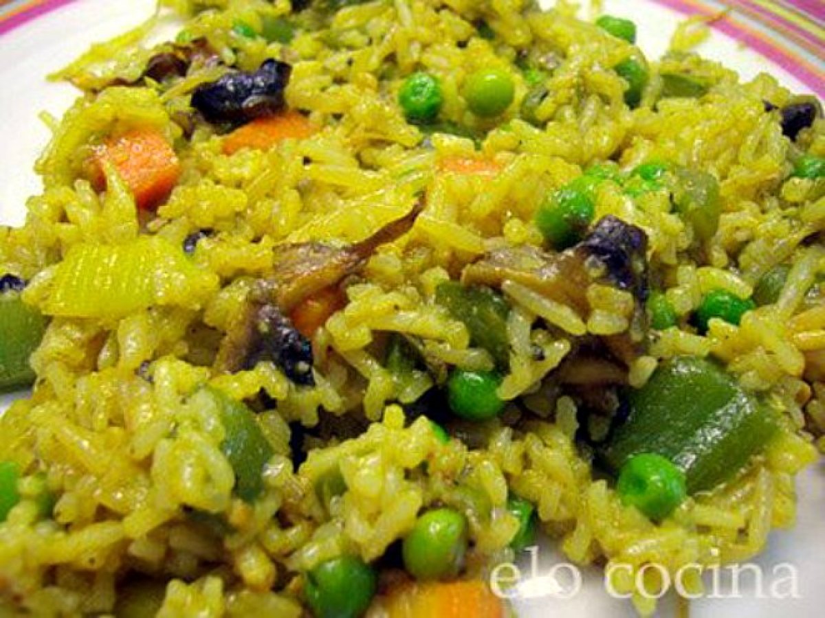 Wok de arroz basmati al curry con huevos y hortalizas PlatoFácil27 min939 Kcal Enviar esta receta a un amigo Imprimir esta página Preguntar al autor Publicar la foto de esta receta Ingredientes 2 250 g de arroz basmati. Una zanahoria. Un puerro. Un pimiento rojo. 100 g de champiñones. 100 g de brotes de soja. Cuatro cucharadas de aceite de oliva. 100 g de guisantes. Dos cucharaditas de curry en polvo. Sal. Dos huevos. Dos cucharadas de vino de arroz. Pimienta. Costo estimado: 4.53Euros€ (2.27€/porción)
