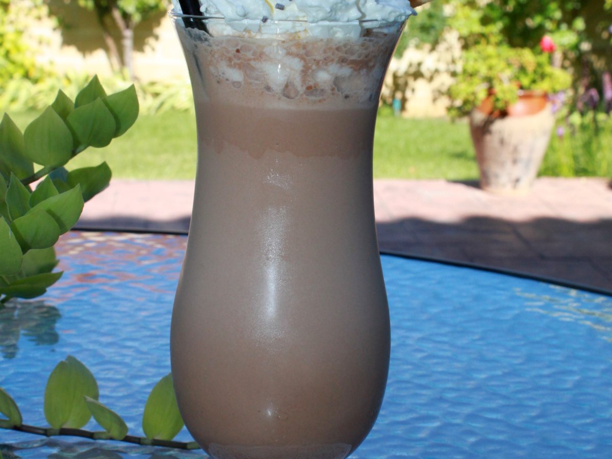 Batido de helado de chocolate con leche PostreFácil15 min758 Kcal Enviar esta receta a un amigo Imprimir esta página Preguntar al autor Publicar la foto de esta receta Batido Ingredientes 4 4 bolas de helado de chocolate (ver receta aqui) 4 vasos de leche 4 cucharaditas de cacao en polvo 4 cucharaditas de azúcar Nata montada en spray (para acompañar) Fideos de chocolate (pata adornar)