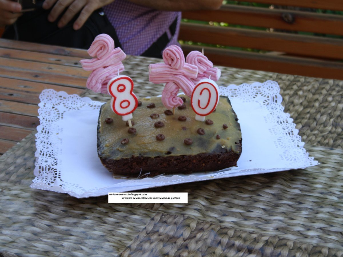Mi suegra ha cumplido 80 años, he decidido hacer dos tartas de cumpleaños, una de pera recubierta de chocolate blanco y un brownie cubierto de mermelada de plátano ( os aconsejo que la probéis, si os gusta el dulce) con galletitas y nubes para adornar. He querido hacer otro tipo de tarta de cumpleaños, la típica de mantequilla o nata de las pastelerías, vas a comprar un pastel y siempre nata. A mi me gusta mucho la nata, pero también me gusta variar y comer pasteles diferentes, ya que hay gran varie