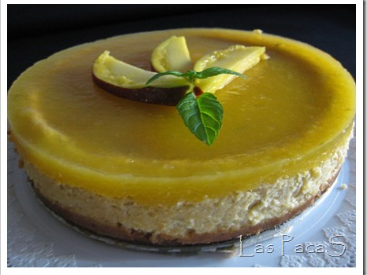 Cheese cake de mango (thermomix) PostreFácil1 hora Enviar esta receta a un amigo Imprimir esta página Preguntar al autor Publicar la foto de esta receta Ingredientes 4 Base: 200 g de galletas 50 g de nueces peladas 40 g de azúcar 100 g de mantequilla a temperatura ambiente. Crema: 500 g de pulpa de mango 150 g de azúcar 500 g de queso cremoso 4 huevos 40 g de maicena Gelatina de fruta: 2 hojas grandes de gelatina ó 4 pequeñas 200 g de pulpa de mango 100 g de azúcar 20 g de zumo de limón Decoración: Al gusto de cada uno.