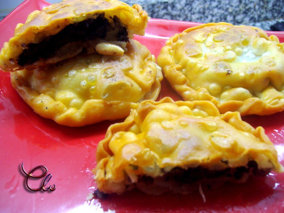Empanadillas rellenas de unos ingredientes que combinan de maravilla: morcilla y pera