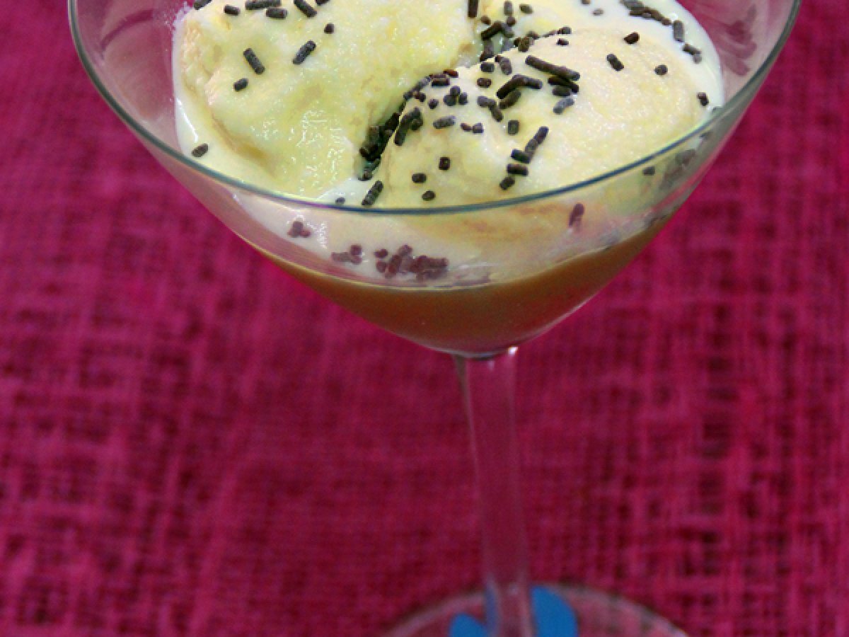 Un helado de almendras amargas elaborado con almendra y con un licor típico de Portugal que está buenísimo. Puede ser plato de postre único o puede acompañar perfectamente bizcochos y tartas.