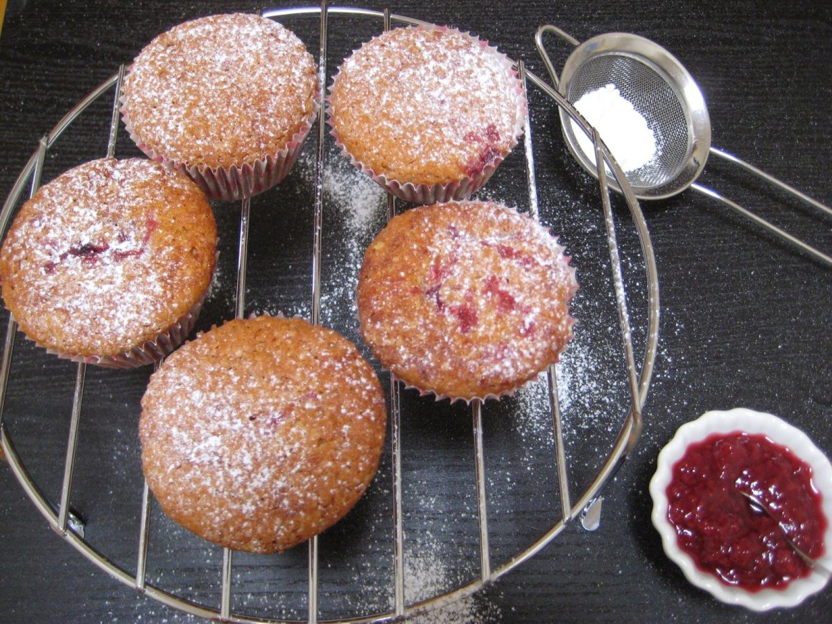 Magdalenas con mermelada de frambuesa