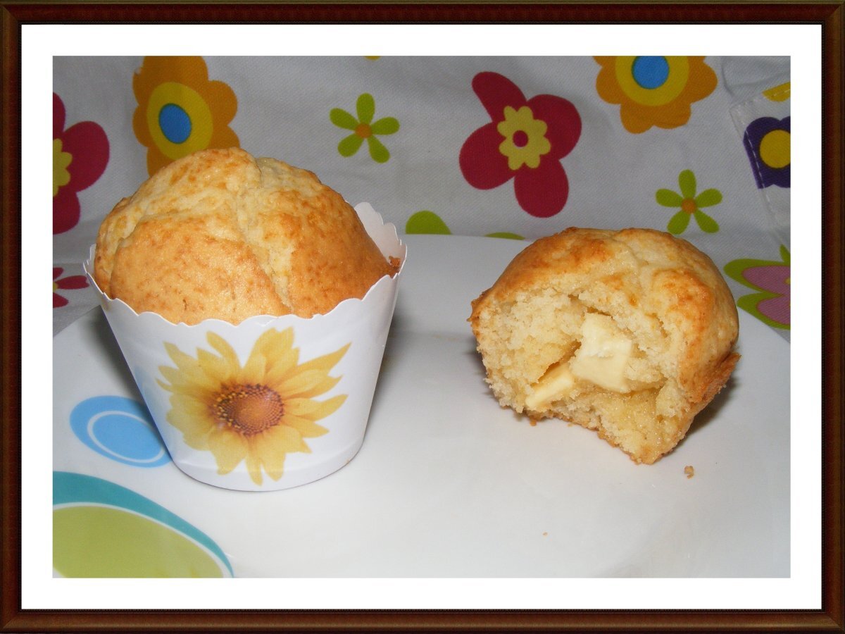 Muffins aromatizados con vainilla y rellenos de chocolate blanco