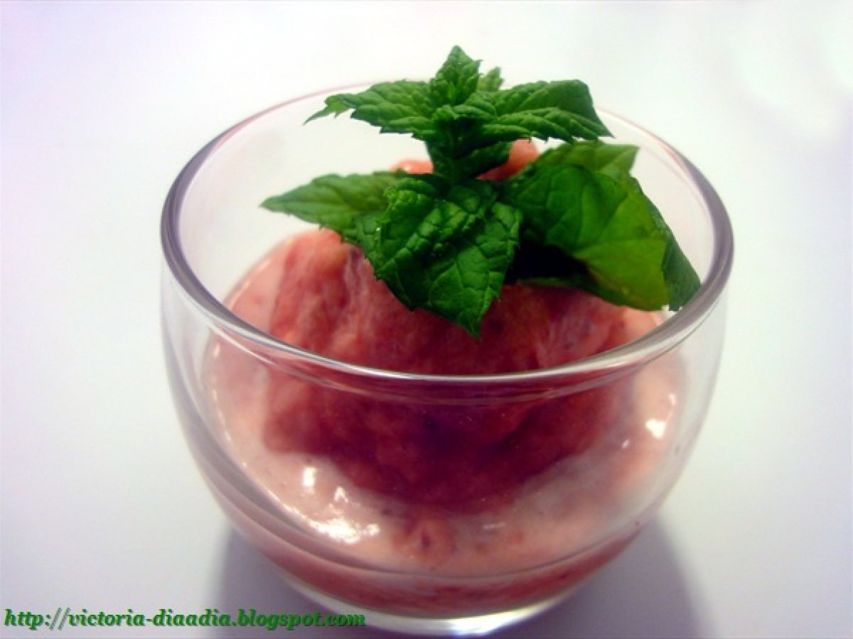 Sorbete de sandia y fresas PostreFácil25 min92 Kcal Enviar esta receta a un amigo Imprimir esta página Preguntar al autor Publicar la foto de esta receta Ingredientes 4 400 g de sandia sin piel ni pepitas 200 g de fresas lavadas y sin pedúnculo 200 g de azúcar o su equivalente en edulcorante 1 limón, sin parte blanca ni pepitas 2 claras de huevo 500 g de hielo, aproximadamente Costo estimado: 3.71Euros€ (0.93€/porción)