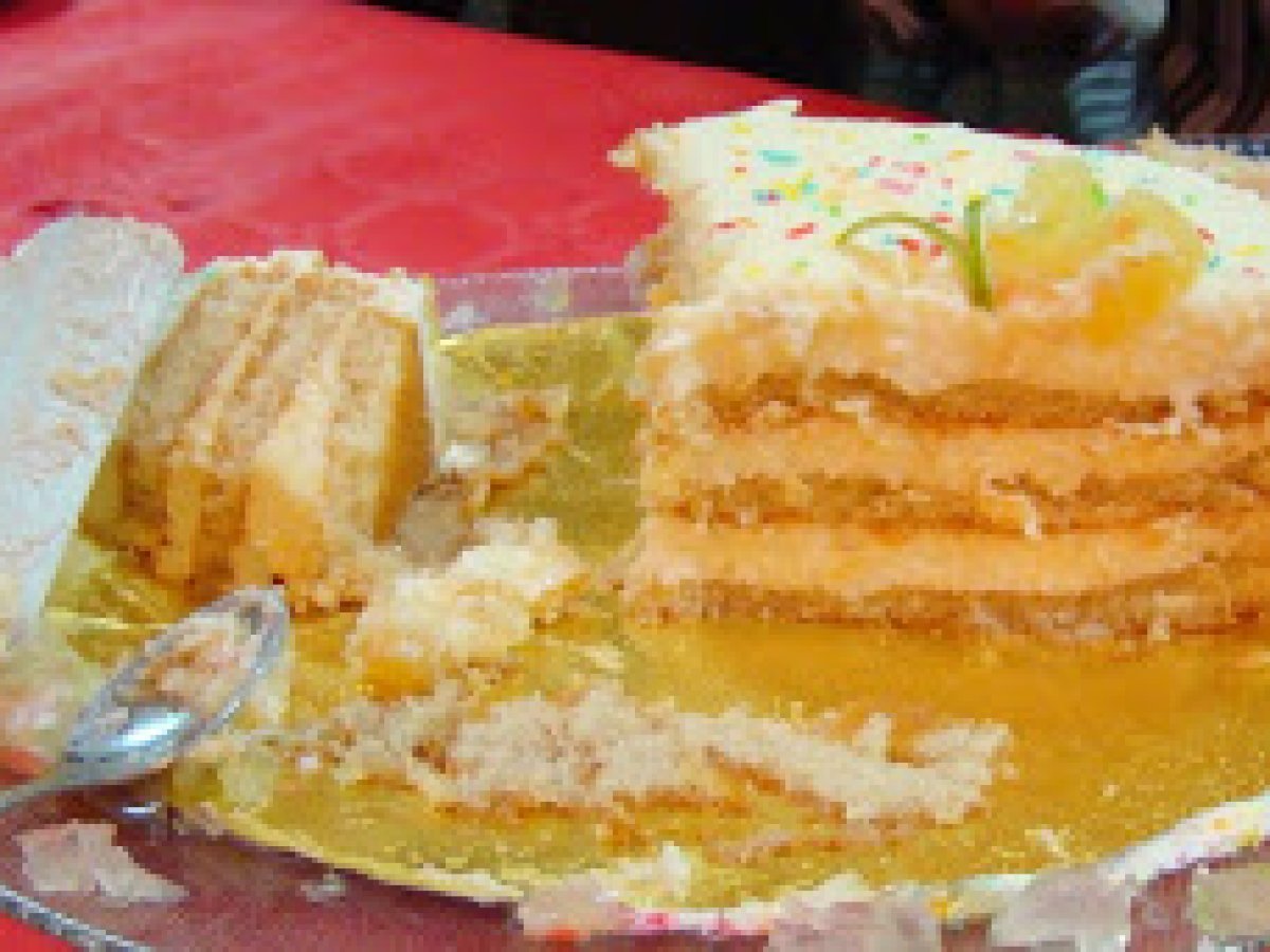Tarta de piña y nata (mariposas) PostreMedio45 min1561 Kcal Enviar esta receta a un amigo Imprimir esta página Preguntar al autor Publicar la foto de esta receta Ingredientes 6 1 Bizcocho genovés 5 huevos 160 gramos de harina 170 gramos de azúcar blanquilla 40 gramos de mantequilla Relleno para la tarta : 8 hojas de gelatina 400 gramos de piña en su jugo 500 gramos nata para montar 175 gramos de azúcar blanquilla Cobertura tarta : 500 gramos de nata para montar 175 gramos de azúcar 4 rodajas de piña (latita pequeña) 1 fresa 1 lima 1 puñadito de fideos colores
