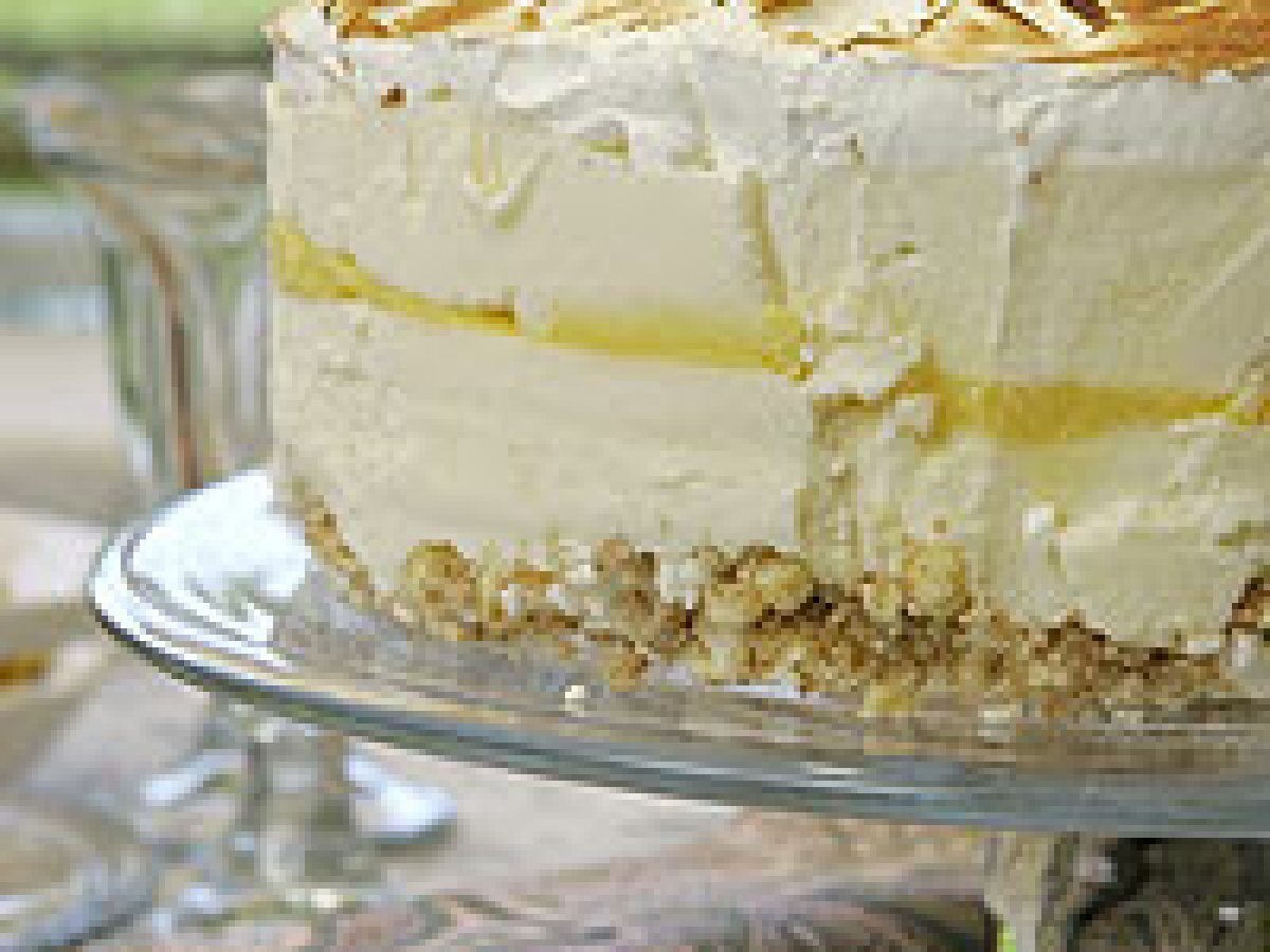 Tarta helada de vainilla, limón y merengue francés PostreFácil45 min Enviar esta receta a un amigo Imprimir esta página Preguntar al autor Publicar la foto de esta receta Ingredientes 4 2 huevos enteros 2 yemas 6 cucharadas rasas de mantequilla sin sal 1 taza de azúcar 6 cucharadas de jugo de limón fresco 2 cucharaditas de ralladura de limón 1 taza de galletas de vainilla molidas Media taza de nueces o almendras tostadas y molidas gruesas Media taza de mantequilla derretida 4 tazas de helado de vainilla ablandado 4 claras a temperatura ambiente 1 pizca de sal 6 cucharadas de azúcar
