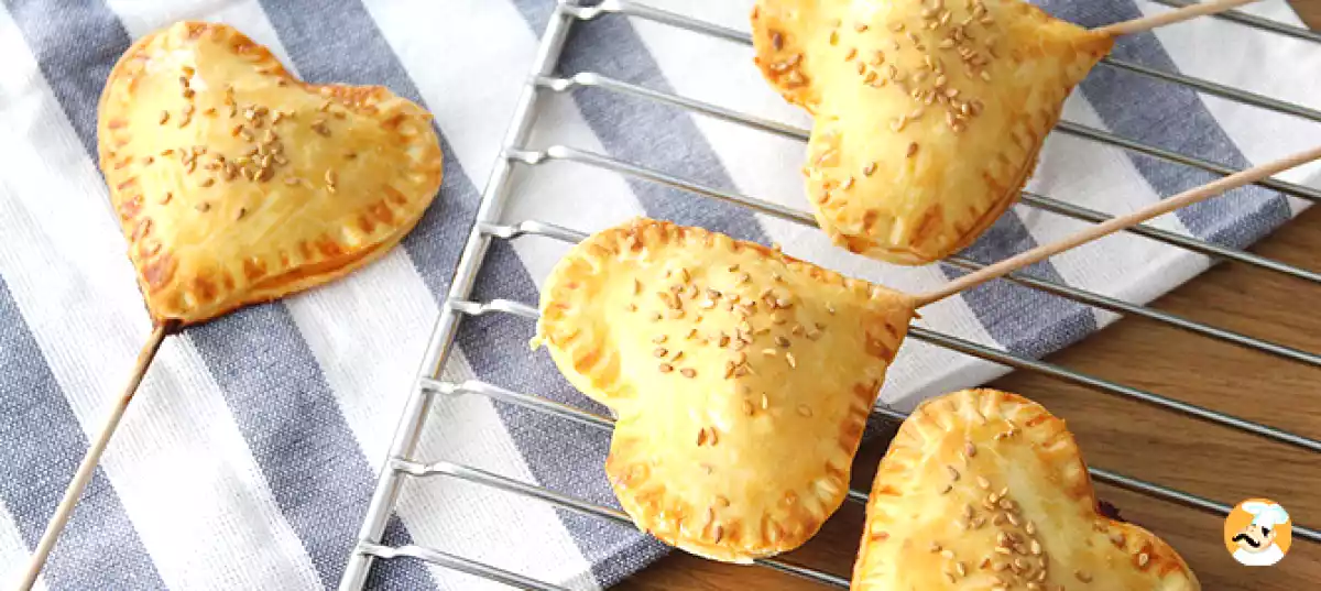 Porque estas empanadillas con forma de corazón son tan lindas, y además, puedes rellenarlas con absolutamente cualquier cosa que a ti o a tu amado/a les guste. Salado o dulce, cremoso o crujiente, esta receta se puede personalizar en todos los sentidos. Y si no te gusta la forma de corazón, siempre puedes hacer estrellas :)