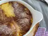 La rabanada, una especie de torrija, y es un clásico tanto en Portugal como en Brasil. Se hace con pan duro mojado en leche o vino, luego frito y espolvoreado con azúcar y canela. Actualmente se realizan versiones de esta receta en las que se utilizan bollería o pan de molde. Aquí te mostramos una versión deliciosa hecha con croissant. Además, va horneada en lugar de frita.