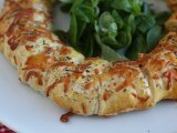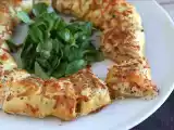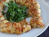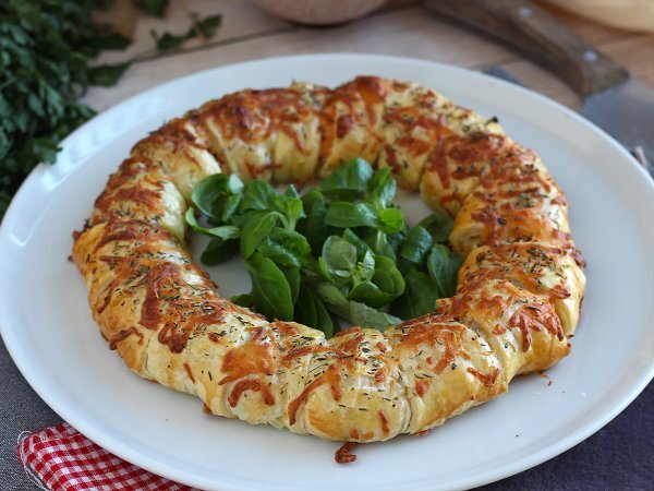 Otra idea original para la hora del aperitivo y del picoteo es esta corona de hojaldre con salmón: crujiente, irresistible y con una presentación bastante original. Es una forma sencilla de convertir una masa de hojaldre en un aperitivo sofisticado. Este que hemos hecho, está relleno de salmón, mostaza de Dijon, mozzarella y algunas hierbas aromáticas pero puedes personalizarlo añadiendo tus ingredientes preferidos.