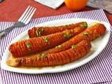 Imagina convertir un ingrediente tan sencillo y cotidiano como las zanahorias en una creación elegante y sorprendente, perfecta como guarnición para tus pescados y carnes. Visualmente estas zanahorias cortadas en acordeón son muy atractivas y ayudará a dar un toque refinado y especial a tu mesa navideña. Con unos pocos gestos y una pizca de desteza, puedes crear un plato sofisticado y muy estético, añadiendo un toque especial a su menú navideño. Si buscabas guarniciones originales, estas zanahorias cortadas con el mismo estilo que las patatas hasselback, son una gran opción.