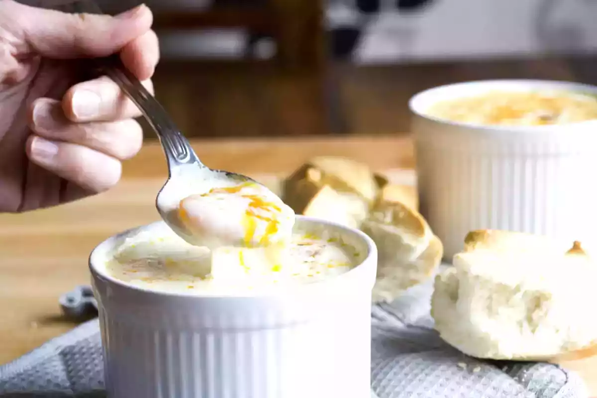 Este plato es tradicional de Francia, normalmente se come en el desayuno. Se sirve en una porción individual y simplemente son huevos horneados con mantequilla y crema.