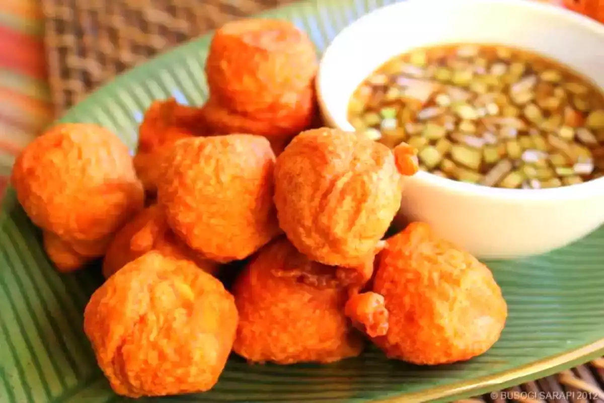 Es una comida muy frecuente en Filipinas. Son huevos de codorniz rebozados con cierto toque anaranjado.