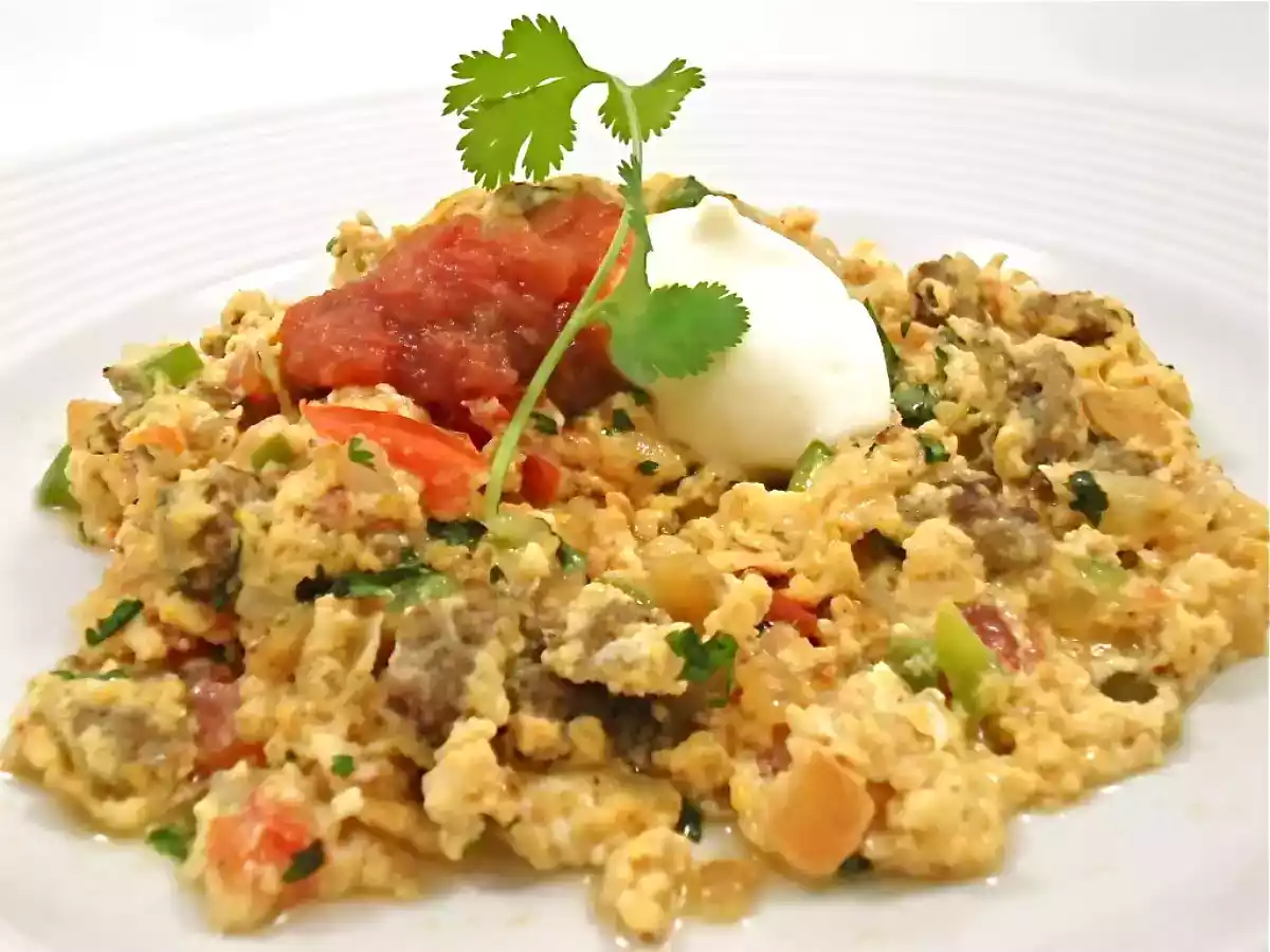 Este plato tan solo es una versión mexicana de los huevos revueltos, se suele reforzar con pan o tortillas de maíz del día anterior.