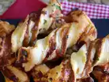 Las patatas asadas envueltas en bacon son un aperitivo irresistible y contundente que deleitará a todos los invitados durante la Eurocopa.La combinación de la suave patata con el sabor salado y crujiente del bacon crea sin duda un equipo ganador.
