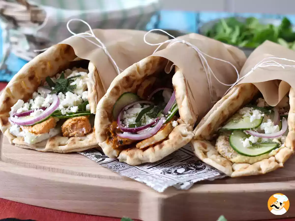 Los gyros de pollo son un clásico que no dejará indiferente a nadie. En esta receta, el pollo se marina en una mezcla de hierbas y especias, y luego se asa a la parrilla hasta que queda tierno y jugoso. Acompañado de hummus y verduras crudas, es una auténtica delicia :-)
