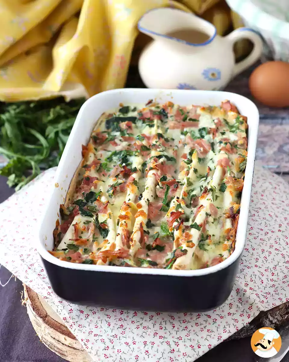 Receta completa | Gratinado de tortillas con jamón, espinacas y mozzarella