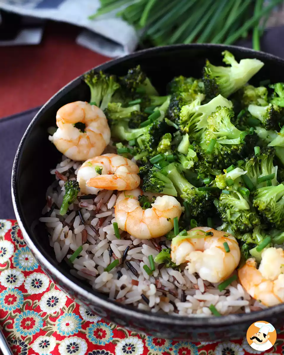 Si buscas una cena sana, equilibrada y rápida de preparar, el arroz integral con gambas y brócoli es la opción perfecta. Puedes personalizarlo fácilmente con otras verduras de temporada, haciendo que el plato sea siempre diferente y se adapte a tus gustos. Aquí te proponemos una versión clásica, pero si quieres intensificar el sabor, puedes enriquecerlo con una salsa: teriyaki para un toque agridulce, o salsa coreana picante para una nota más atrevida y fuerte.