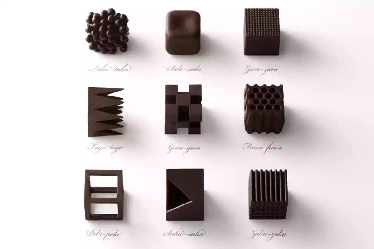 Cada chocolate tiene un nombre de expresiones japonesas que se utilizan para describir la textura de cada uno: