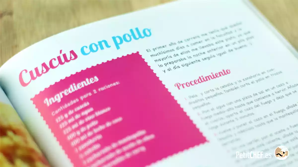 Pensar cada día en qué cocinar supone un dilema y con las recetas de este libro ¡acabarás sacando el chef que llevas dentro! Por que como la misma autora cuenta, comenzó su aventura en la cocina con una simple receta de crepes que le enseñó su profesora de francés y esto la llevó a engancharse al mundo de la gastronomía.