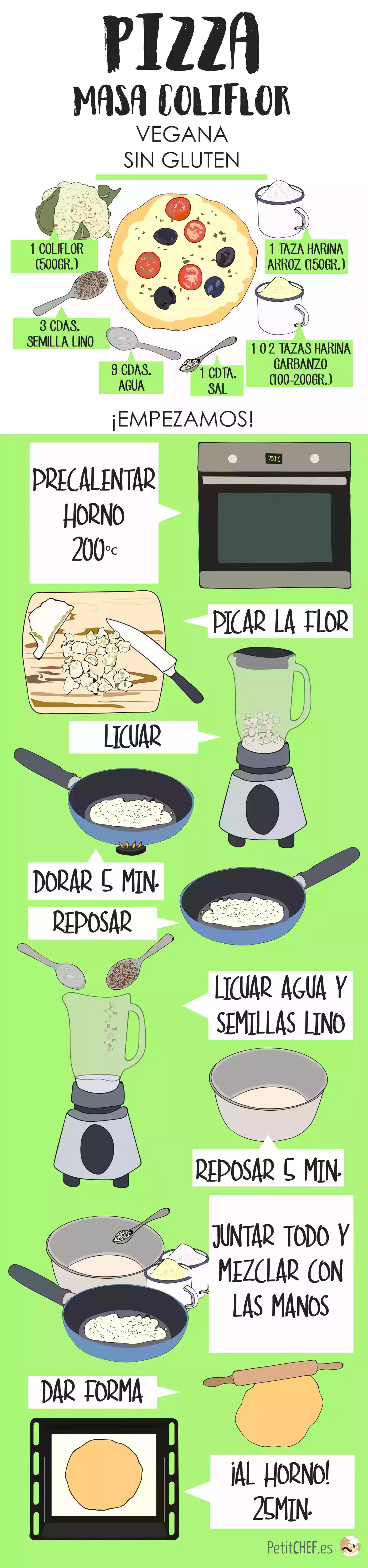 Existen otras recetas de masa de coliflor pero que contienen huevo, por lo que deja de ser vegana u otras que contienen harinas aptas para celiacos aunque con demasiados aditivos no muy saludables.