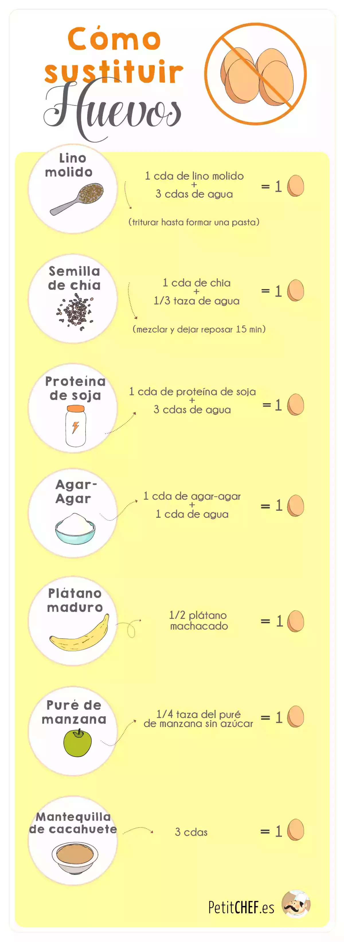 Las soluciones que dan para sustituir el huevo en una receta son excelentes.