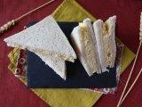 - Repartir la mezcla uniformemente sobre las 4 rebanadas de pan de molde y cerrar los sándwiches. Mételos en la nevera antes de servirlos.