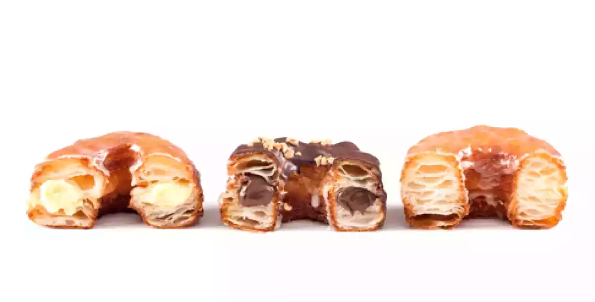 La nueva sensación pastelera! El famoso Cronut! Mitad croissant mitad donut relleno de crema y glaseado por encima.