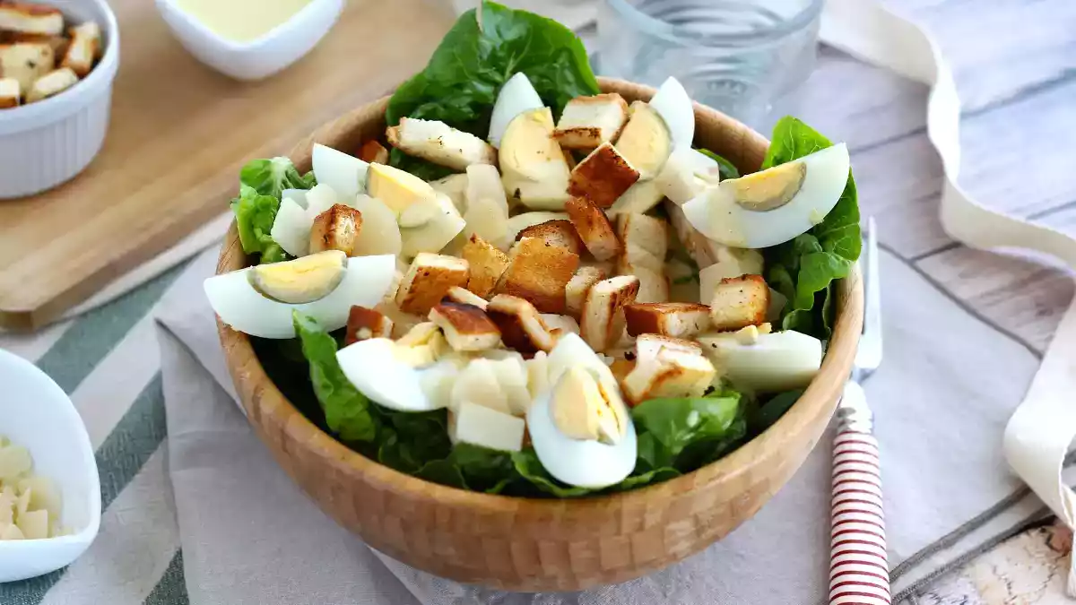 Esta salsa cremosa, famosa por realzar las ensaladas César, se elabora con aceite, yema de huevo, queso parmesano y, a veces, anchoas. Contiene unas 550 kcal por 100 gr, principalmente debido a su alto contenido en grasa.